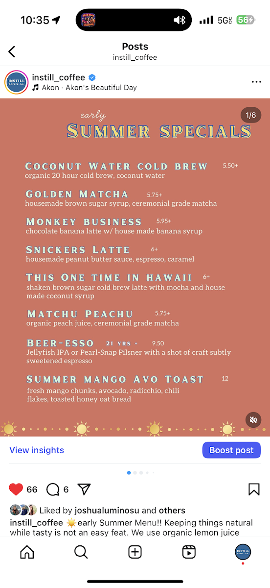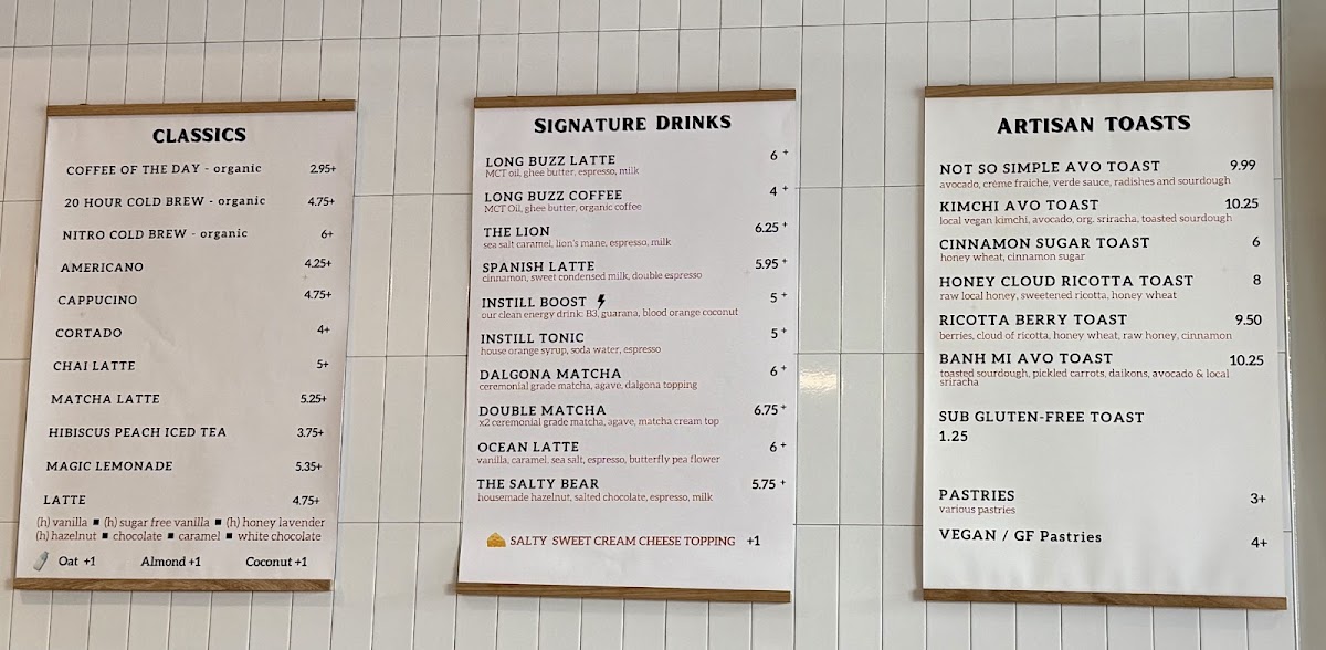 Introducing the Menu at INSTILL COFFEE CO